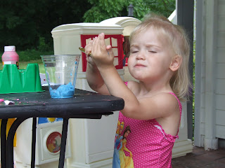 Poor Norah had to stay inside and watch her sisters play outside. She didn't mind, she actually enjoyed the show quite a bit! Shiloah filtted around to lots of different activities while Hannah stayed put at the painting station for a very long time. She painted her entire self, including her face, eventually.